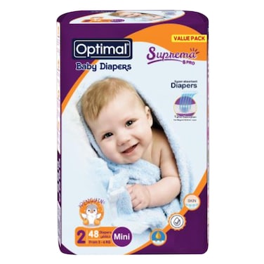 Optimal Size 2 Mini Baby Diapers 48 Count 3 To 6Kg
