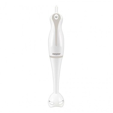 Hand blender ideal for preparing soups and pureed soups. Abs body and ergonomic handle for easy grip. Removable shaft for easy cleaning and double stainless steel blade. Push button on the handle. Power: 250 W Product dimensions: 36x6.4x6.4 cm