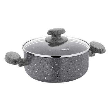 Korkmaz A2807 Mia Granite Casserole provides high cooking performance even at low heat with its high thermal conductivity. It makes more delicious meals by using less oil than other types of cookware. It is produced from materials that can be recovered by recycling. These Korkmaz A2807 Mia Granite Casserole is raw material of the volcanic coating is produced with German technology in Weilburger, Germany. Mia Granit, which is produced from recycled, completely natural material, with environmentally friendly technology, makes delicious meals using very little oil with its extra scratch-resistant volcanite-looking PTFE coating and high-temperature resistant silicone outer coating.
