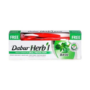Dabur Herbal Natural Basil Toothpaste 150GR Toothbrush Free