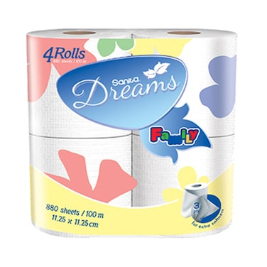 Sanita Dreams Family 3 Ply Toilet Tissue Rolls 4 Rolls