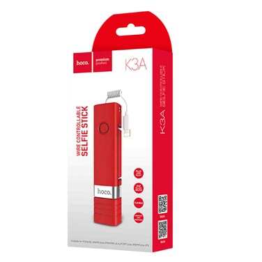 Hoco K3A Beauty Lightning Wired Handheld Selfie Stick for 55-85mm mobile phones Lightning Interface wire control foldable stainless steel rod 7 level telescopic 65cm total length. Stainless steel telescopic rod, seven-stage stretching, ABS material handle surface with pattern texture, feel comfortable. Wire control, plug and play, for all Lightning connectors.