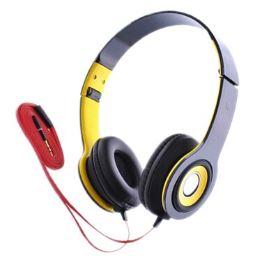 - On Ear Wired Headphones Stylish and Compact design eliminates outside noises so you can enjoy listening to some tunes or focus on a game - Adjustable headbands - Frequency Range 20-20000 KHz - Sensitivity 106dB - Cord length up to 3 meters - Audio Jack 3.5mm stereo input - Great for computer applications such as Video Calling, Gaming and Music COLOR Red & Yellow